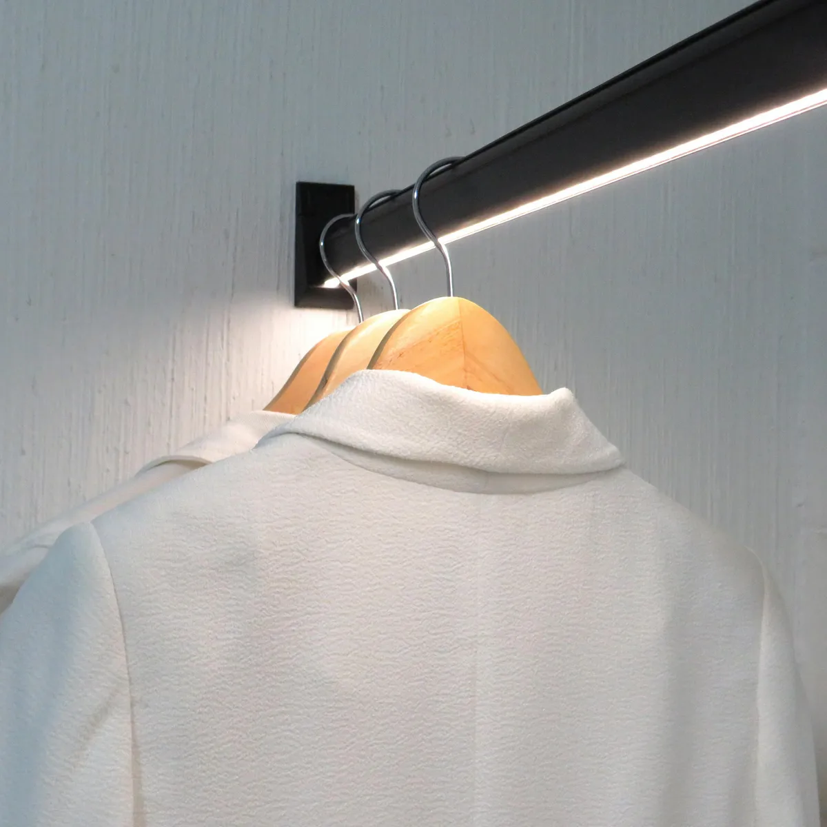 Esta barra de closet cuenta con una iluminación LED integrada y está fabricada en aluminio, lo que garantiza durabilidad y resistencia. Con un largo de 100 cm y un ancho de 2 cm, se adapta fácilmente a diferentes espacios. Además, cuenta con una garantía de 6 meses.