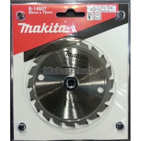 Disco Sierra Tct 85x15x20t Madera (B14607) marca Makita, diseñada para trabajos exigentes en carpintería o montaje. Venta por unidad.